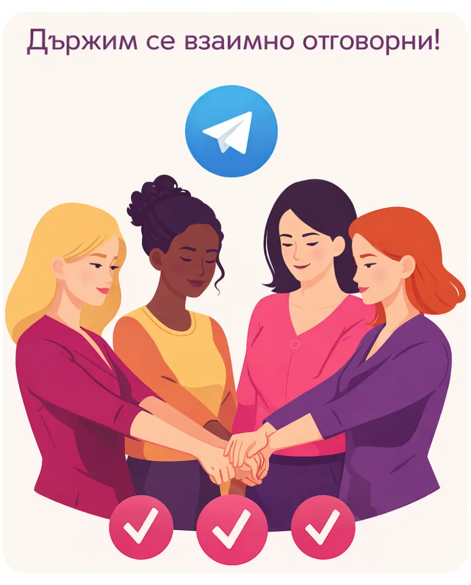 Твоя мини-група за цели, движение и отчетност → вече не си сама — имаш женска сила зад гърба си, която те движи, дори когато ти паднеш.